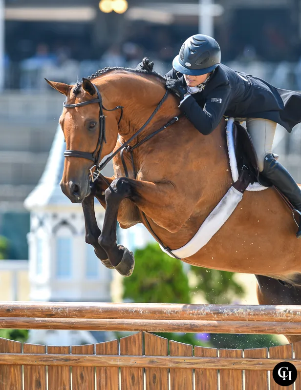 The pair lost the class last year after “Lafitte” spooked at the raucous applause as he landed from the last jump, so she asked the crowd to be more patient with their cheering Saturday, but said she was looking forward to the evening class.