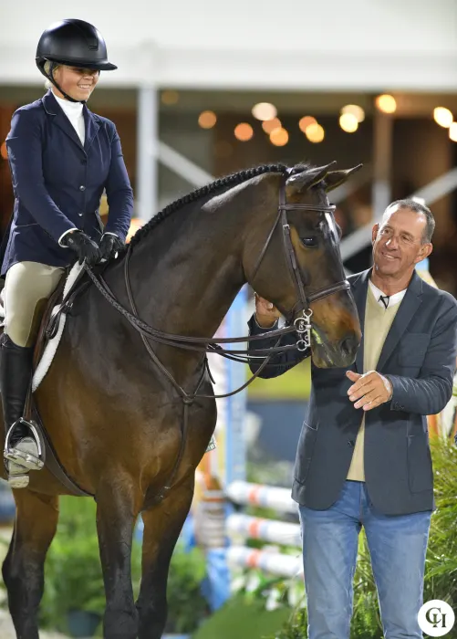 The first round had plenty of challenges, with several combinations including a bounce, and cavaletti to traverse, which confused a few horses. Tatum rose to the top of that round, then came back last for the second round. After scoring a pair of 92s in that round, she tested last. For the work-off, riders had to jump a shortened course including a hand-galloped fence, a trot jump and two counter-cantered fences. That provided plenty of challenges for Kruz, who is still relatively new to the equitation having started in that division in September.