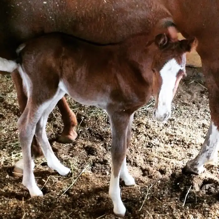 After three attempts to breed Poison Ivy, the mare finally came up pregnant in 2015 by an Irish Sport Horse stallion, Bridon Beale Street, and Harvey began to think of the foal in utero as her “miracle baby.” The Bay Area rider turned the pregnant mare out at a farm in the nearby Central Valley to graze and rest until the foal arrived.