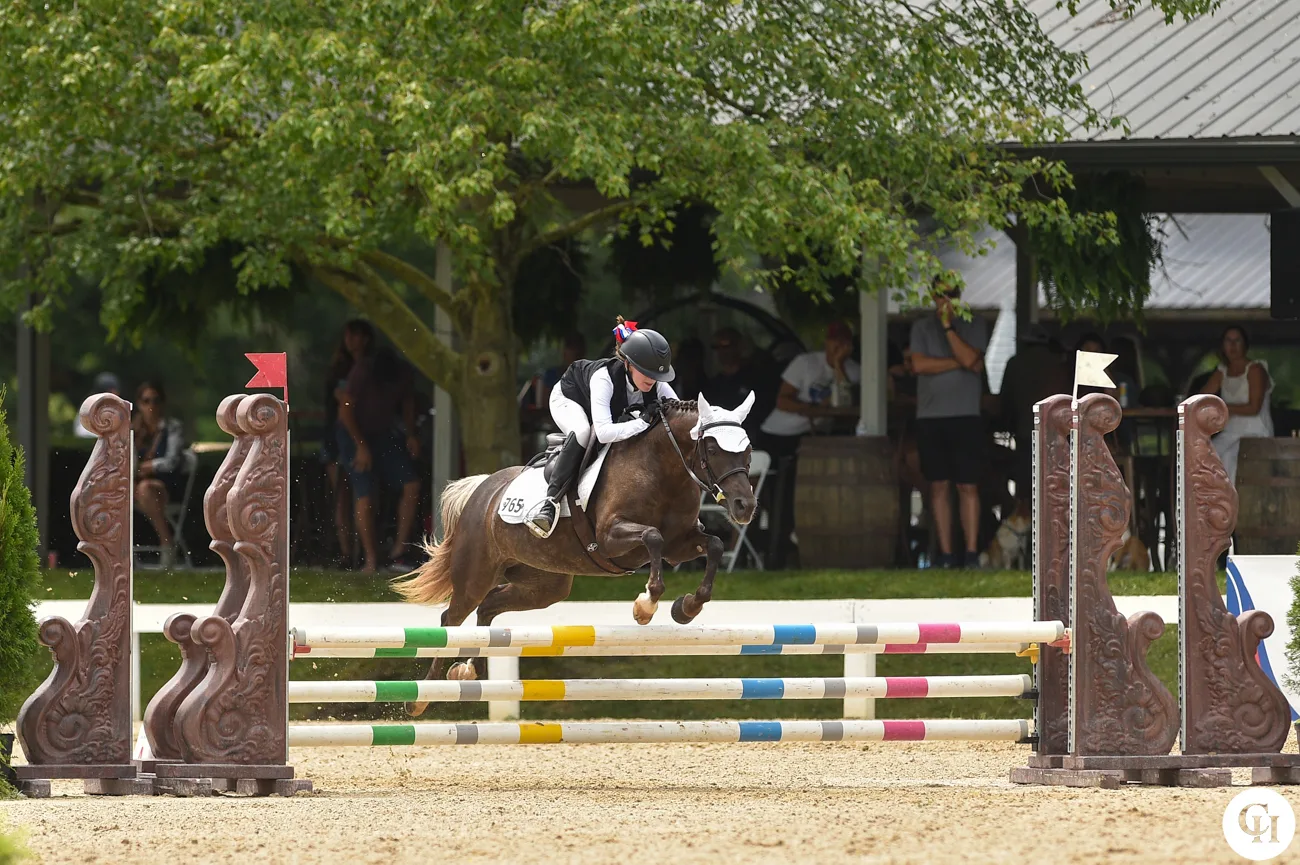 After a tough year of competition last year in which nine of the 26 rounds in the team competition ended in elimination, this year the Pony Jumper National Championships got a major revamp. Previously all ponies jumped 1.05 meters. Now there are four height sections: small ponies jump .65 meters, medium ponies jump .75 meters, larges jump .85 meters, and an open 1.05 meter section. At this year’s competition the small/medium ponies have been combined, with a little less than 50% of the competitors aboard small ponies. Larges and the 1.05 meter divisions have been combined as well, with 10% of the entries competing at the 1.05 meter height.