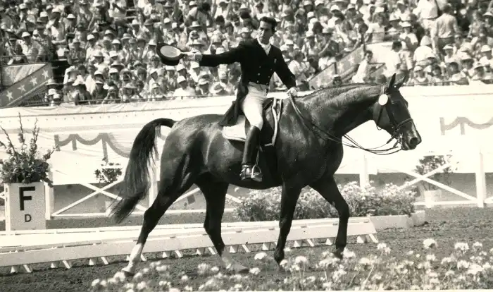 After the first day of the Olympic team dressage competition on Wednesday, Aug. 8, 1984, the heavily favored West German team was in trouble. Their first rider, Herbert Krug on Muscadeur, had scored (for him) a mediocre 1,575 (63%) for a test lacking in energy and riddled with mistakes. There seemed to be a hole in the German armor.
