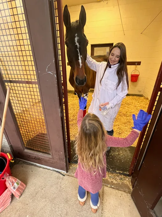 Additional circulatory issues and continued fevers necessitated a trip to the Marion duPont Scott Equine Medical Center, where veterinarians weren’t optimistic. She was diagnosed with disseminated intravascular coagulation, a rare clotting condition in which blood clots develop throughout the bloodstream.