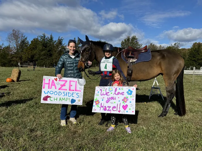That is how EPA Elegance (Wido—Miss Courcel, Dow Jones Courcel) and her owner Shannon Daily ended up with a cheering section, complete with handmade signs, when they crossed the finish line as winners in the training/novice division at the Calais Horse Trials, held Nov. 23 in Powhatan, Virginia.