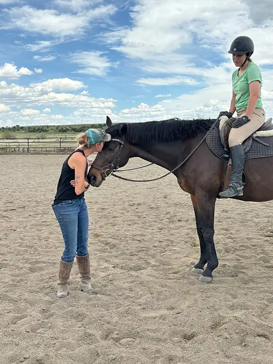 “Oink,” a 17-year-old Thoroughbred, (Perfect Soul—Crousille, Highest Honor) had a long racing career that led to an eventing career before ending up at the nonprofit Center for Racehorse Retraining in Cheyenne, Wyoming. Foust, a registered psychotherapist and former three-day eventer, took him on a care lease in 2022. He became a treasured lesson horse for her, taking adults and children from their first rides to their first shows, in addition to doing therapy work for her Body N Soul Integrative Equestrian Services.