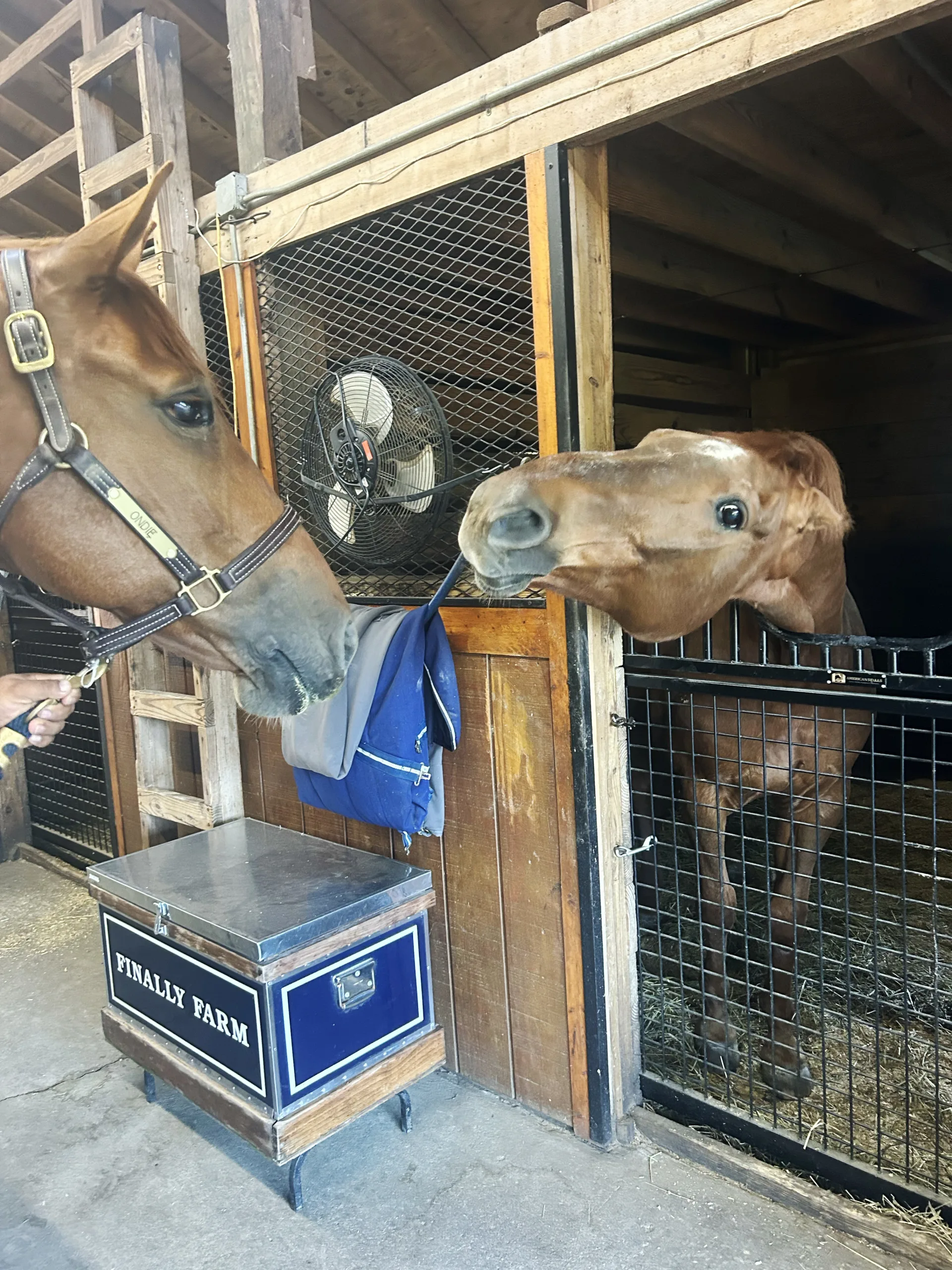 • Another thing that helped Ondine settle into her stall? A new neighbor, none other than Brunello, who moved right across the aisle from Ondine when they’re at home in Camden.