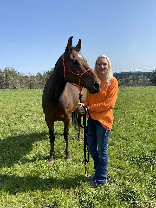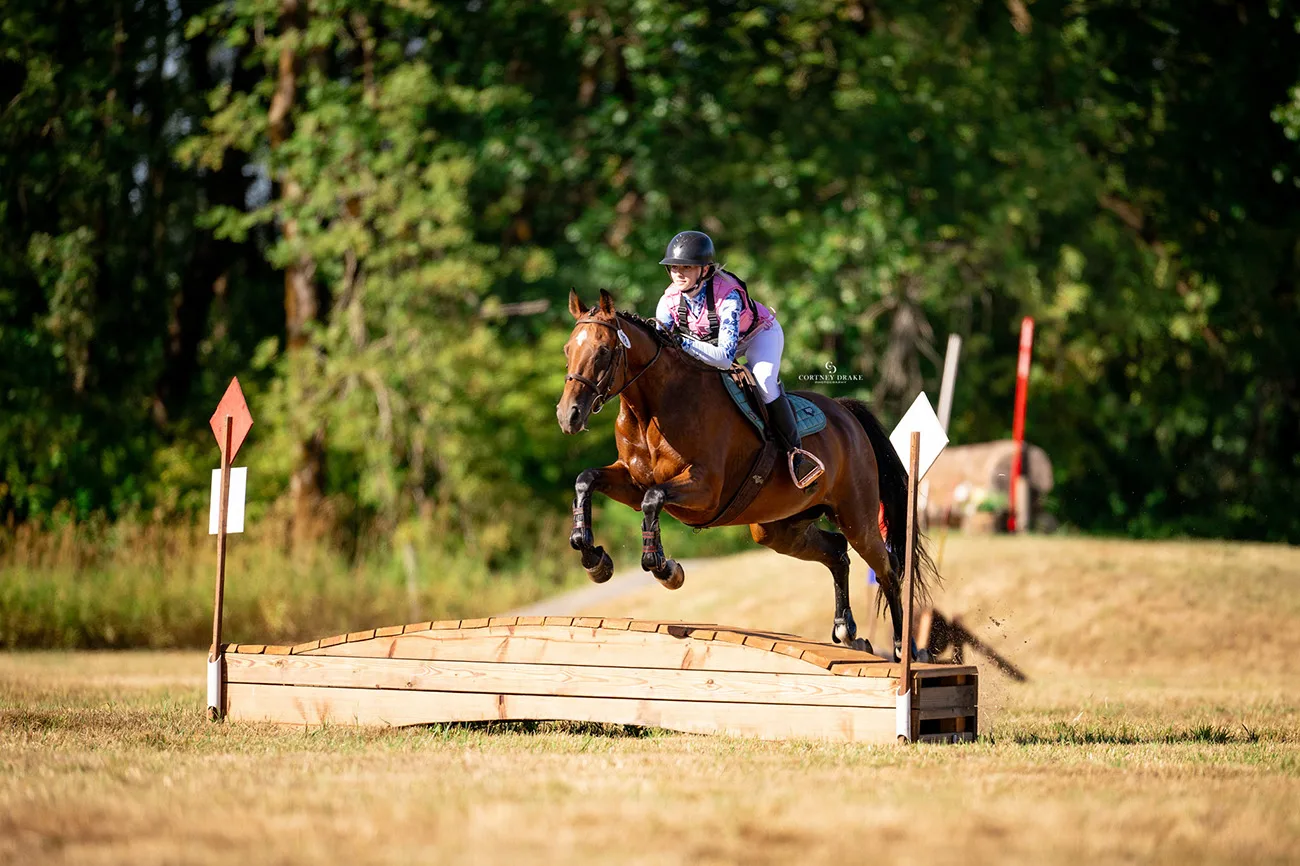 Mikenna has experience in several disciplines and believes it is important to help horses find their best niche, but eventing is her personal passion. In January 2023, Mikenna and Kitty competed at their first horse show, jumping crossrails at a schooling competition hosted by the local Pony Club. Encouraged by Kitty’s performance there, Mikenna began preparing for the Inavale Farm (Oregon) schooling horse trials at the starter level in June. Wearing just a simple leather bit on cross-country, the pair not only completed the event, they walked away with a ribbon.