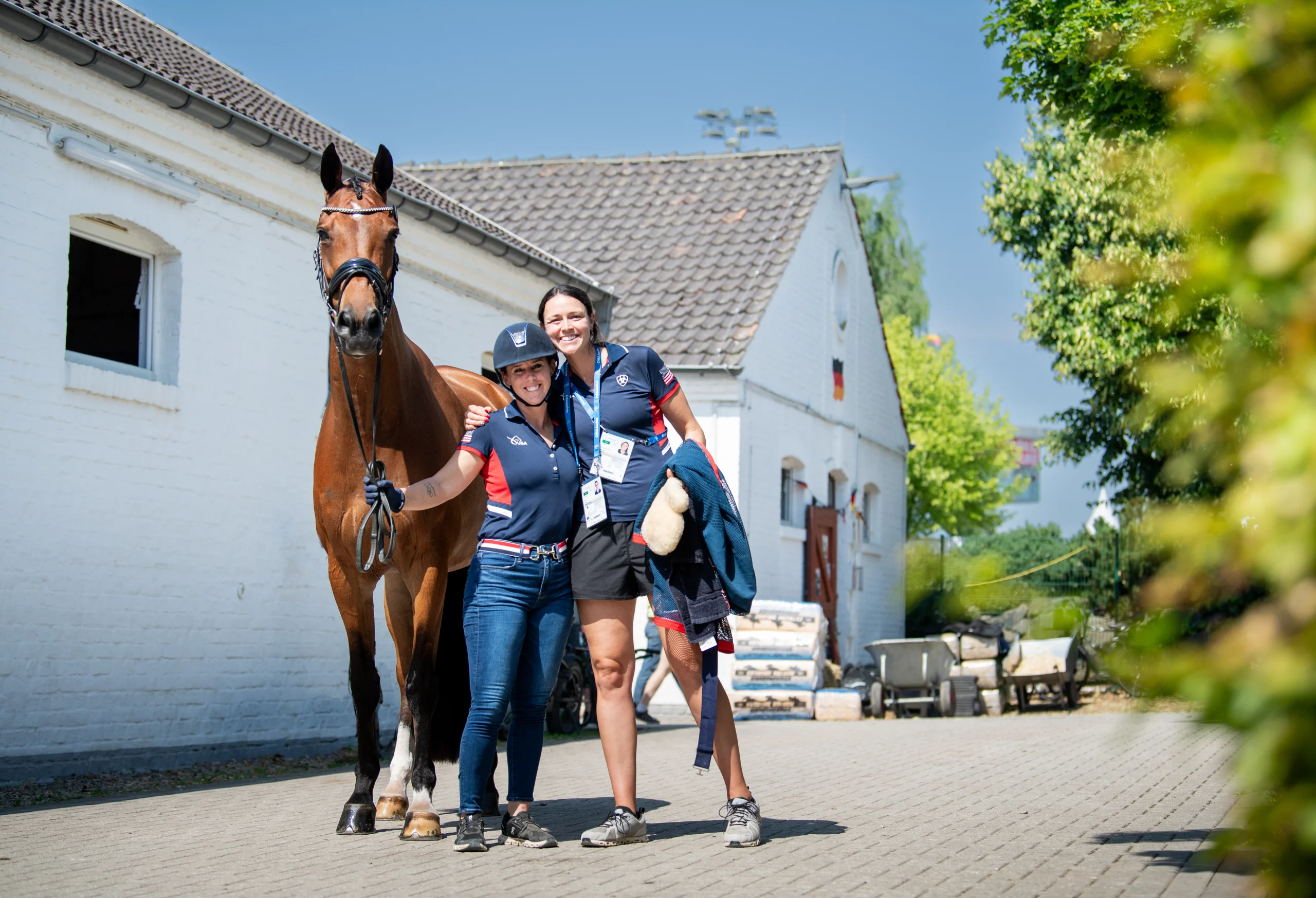 There are times Laffin fully wears her groom hat, like when Perry-Glass competed her top horse Heartbeat W.P. in Europe this summer, but they also have a mutually beneficial relationship. They bounce ideas off each other in the barn, and Perry-Glass will often groom for Laffin when she competes.