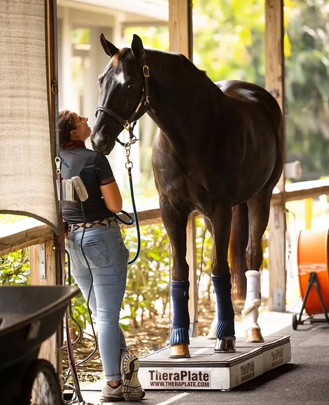 “This is a family operation, and she’s dedicated to my son and his polo ponies, and that’s difficult because it’s in the middle of our season too,” Susan said. Muma sometimes uses her day off from dressage grooming to work on the polo ponies and do therapies for them. “She’s like, I want him to succeed, and I know I can help them,” Susan said.