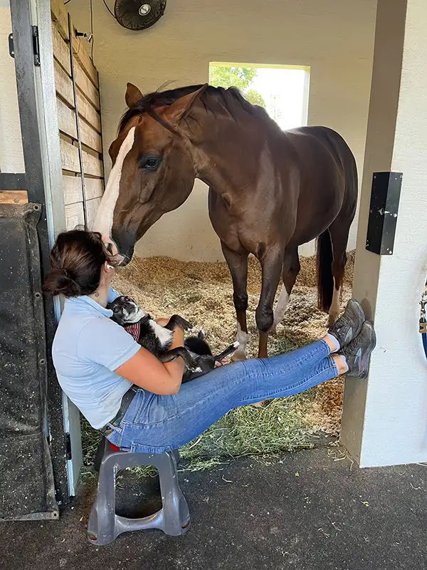 “A lot of people skip the part of paying attention to what your horses are just trying to tell you in their everyday life—it just kind of gets lost in the shuffle, and I’m just so fortunate that I can be so hands-on in the stable, and Susie trusts me enough to guide everybody in a way, and we all work together,” she said. “It’s cohesive. I love learning new things every day. Nobody ever knows everything; there’s always something new to be learned and taught and just be observant. And I think that’s why our horses enjoy being with us. We don’t just chuck them in the stall and pull them out to ride. It’s nice when they nicker at you and stuff like that. It makes the job a little bit easier when you know that they appreciate it.”