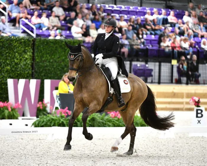 Dancing to freestyle music from the hit animation movie, Gallagher and “Come Back,” a 13-year-old Lusitano gelding (Galopin De La Font—Xantilly SM, Quixote SDS) who she owns with Ellen Lazarus, clinched the win for Canada on Saturday with a 72.94% at the World Equestrian Center-Ocala February CDI3* (Florida), besting their previous top score of 71.47% which they set just a few weeks earlier at the venue’s January CDI3*. In fact, the Ocala, Florida-based pair has gone undefeated in all four of their international starts this year.