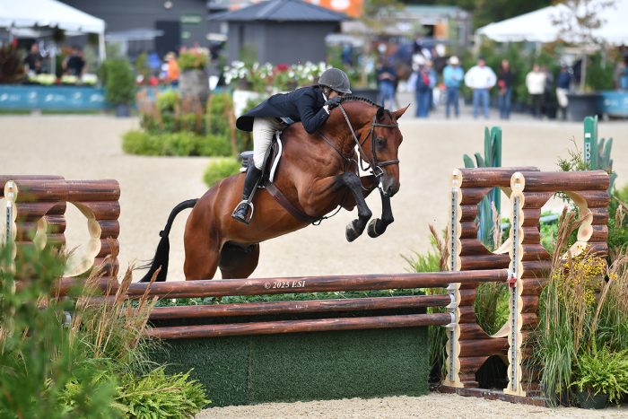 “The first probably four jumps, I felt like I kind of needed to hold his hand a little bit and just be a little bit not as brilliant as sometimes you would want for a class like that,” she said. “But I think his jumping style was covered up a lot, and by the in-and-out to the last two lines, he was just in the groove then, and I could let go of his head a little bit and just kind of get to the jump and let him explode over the jump.”