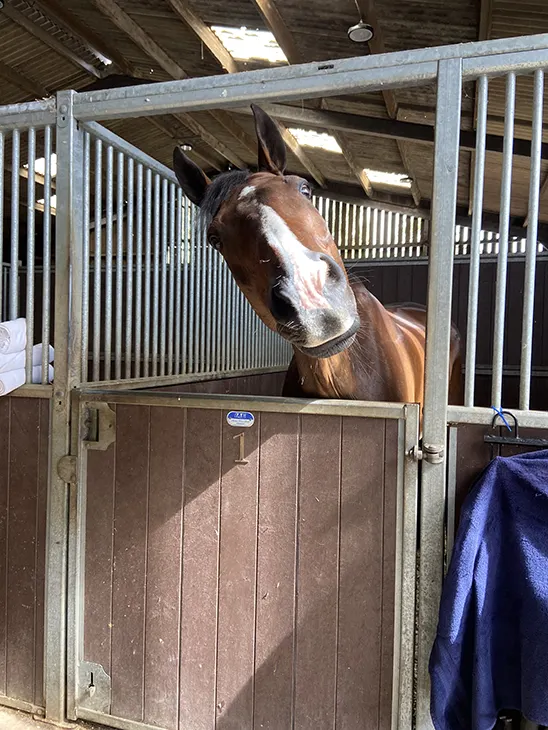 • Mason wears Soft Ride hoof boots when standing on the trailer because he is a master of pulling his hind shoes off.