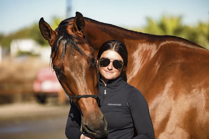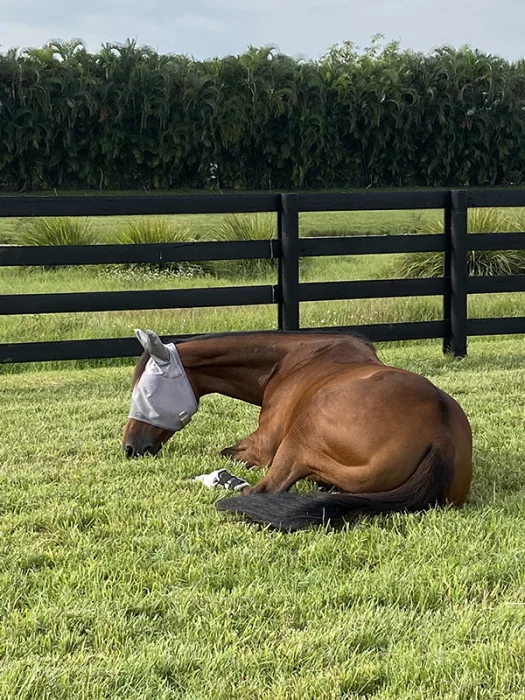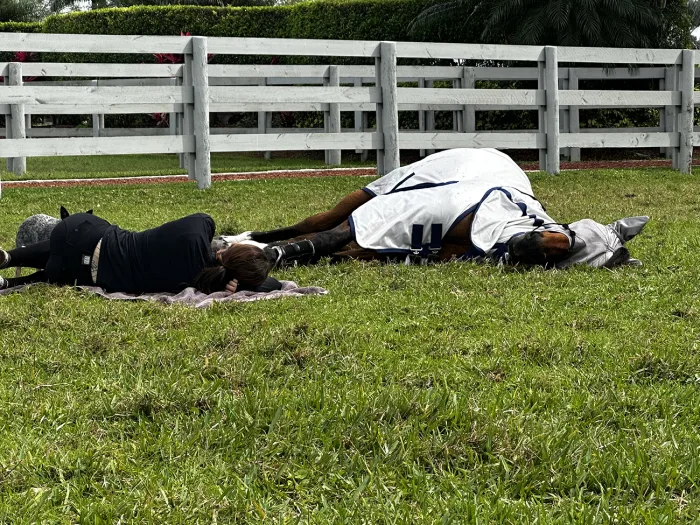 • She adores her turnout time. She used to live in a field with other horses in France. “I think she wishes she could [still] do that, but California is not really known for their vast fields,” said Falanga. “She goes out as many hours as we can give her. So at home it’s between five and seven hours a day she’s outside. And when we’re on the road, it’s as many as I can possibly give her.”