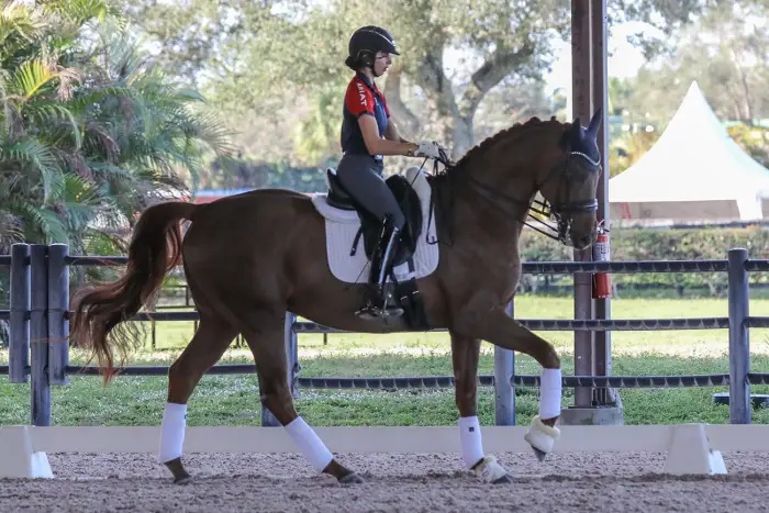 Bateson-Chandler noticed that Luminosity JP has a nice trot, and she remarked that he may have an exceptional trot, but his 18-year-old rider Addy Batcheller from Little Rock, Arkansas, needed to make him move forward into something that felt almost like a rising trot so that he pushes forward. “You’re only going to get more expression … if he pushes from behind and with contact and connection,” Bateson-Chandler told Batcheller, encouraging her to take a risk and try for bigger.