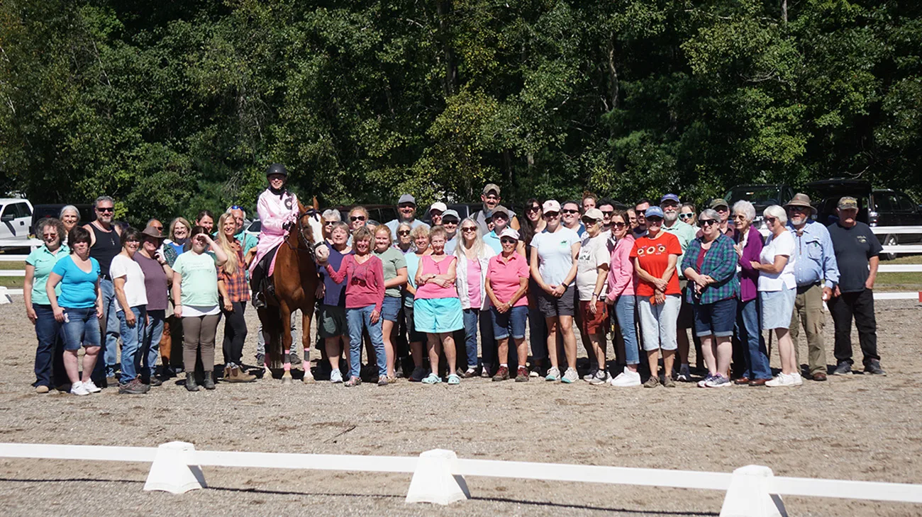 Although the demonstration was intended to highlight Dimitri, whom Cuffey adopted from the Maine State Society for the Protection of Animals in Windham over six years ago, it carried additional poignancy for all present. In December 2022, Cuffey, 69, a lifelong member of the Maine equestrian community, was diagnosed with stage 4 pancreatic cancer. She has recently learned that treatments have been unsuccessful, and no further options remain.
