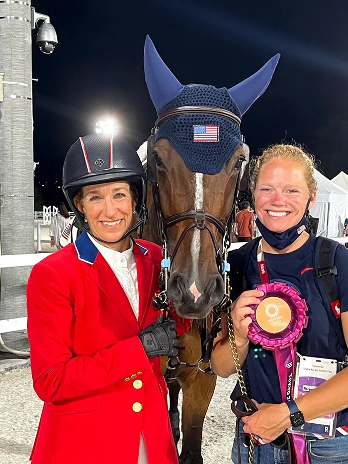 “I’ve had a really well-rounded way of learning about horses and the horse world,” she said. “For example, I use some of the finishing touches they do with equitation horses, like baby powder on their white legs, or shining boots. From eventing, I know how to cool off a horse on a hot day—which really comes into play when you are in a place like Tokyo [for the 2021 Olympics.]”