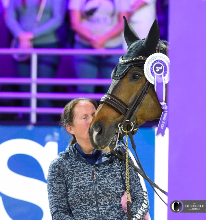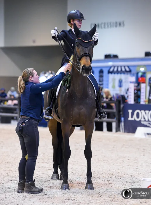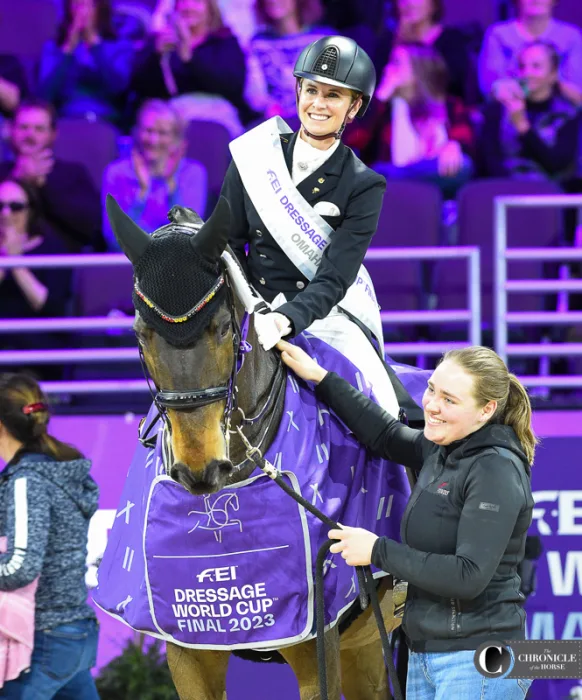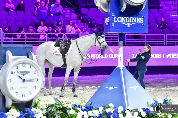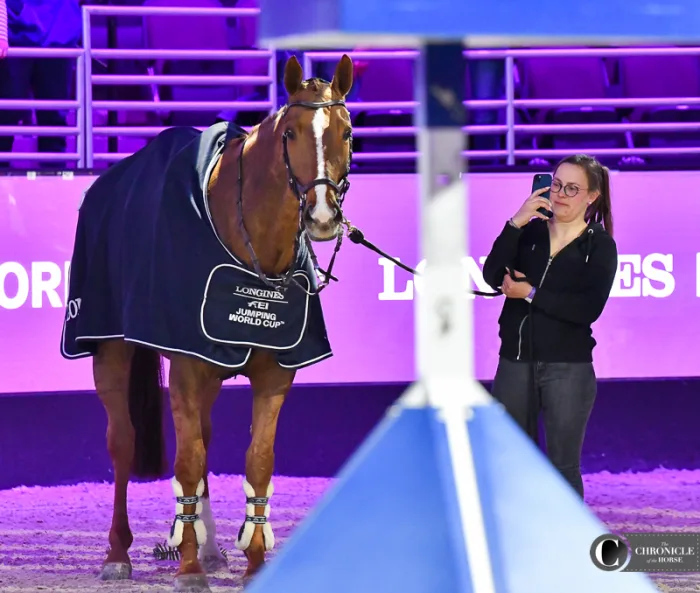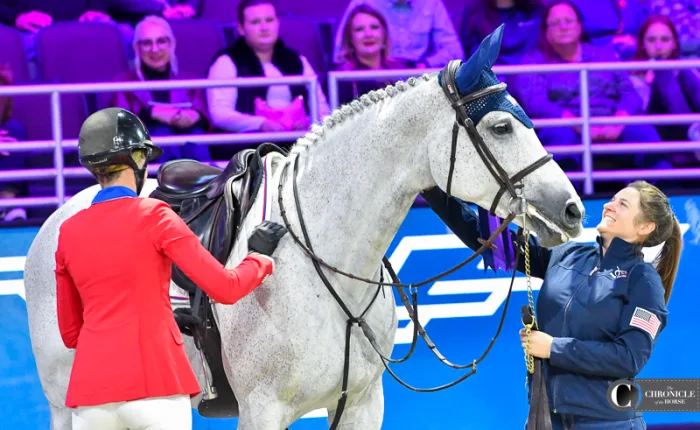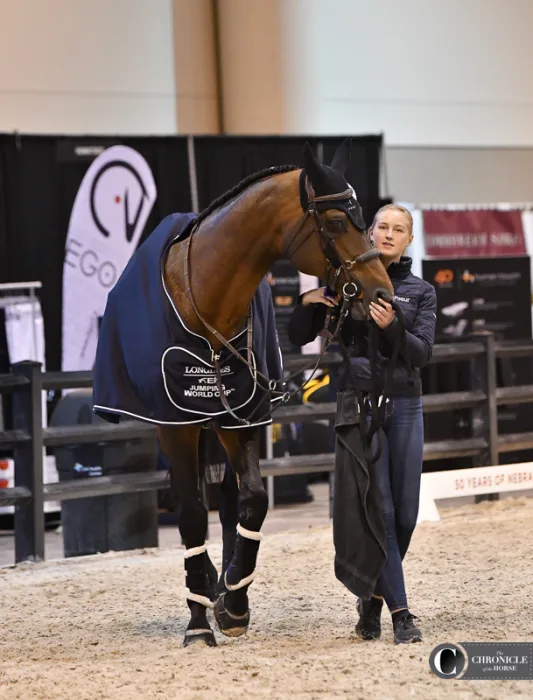 Grooms are the behind-the-scenes heroes of equestrian sports. They often know their horses better than anyone else and are the first ones in the barn every morning. While their names do not appear on the winner’s trophy, this year they did appear on the Jumbotron in the CHI Health Center in Omaha, Nebraska. As part of a recent initiative by the Fédération Equestre Internationale to provide more recognition to people who are integral parts of each horse’s successful team, every groom’s name and photo was displayed on the screen and livestream, along with horse and rider names, when their charge entered the arena. Here are some of our favorite photos of the grooms for top horses at the FEI World Cup Finals, held April 4-8.