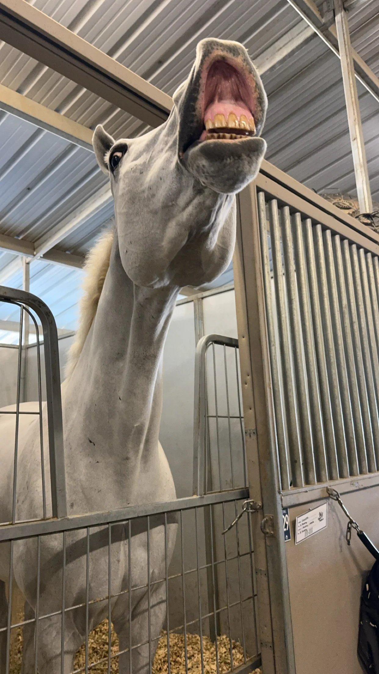 “He doesn’t fight, doesn’t kick, doesn’t act up, doesn’t pull back, never gives the [grooms] any trouble,” she added. “He’s just a nice horse.”