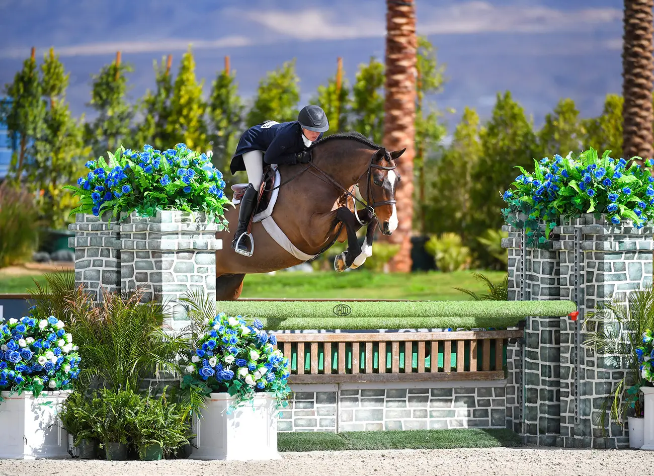 Their business partnership has only continued to blossom over this year’s winter circuit at the Desert Horse Park in Thermal, California. On Feb. 14, Postel and Jack Strang’s Full Moon Fever rode their way to the top of the $49,900 USHJA International Hunter Derby with scores totaling 377 points. After acquiring “Louis” at the end of Thermal last year, Postel has taken her time developing the 12-year-old Westphalian gelding (Balous Bellini—Maximare Conchita) into his new job as an international derby horse and Strang’s 3’3” junior hunter.