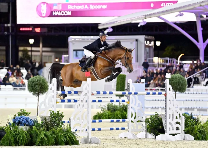 On Jan. 20, he lived up to his nickname yet again when he topped the $100,000 Lifeforce Grand Prix at the World Equestrian Center—Ocala on Molly Ohrstrom’s Halcon, a 9-year-old Argentinian Sport Horse stallion (Con Air 7—Jota-E Calista, Cardento 993), who Spooner calls “the kind of horse that can make you look like you know what you’re doing.” It was the stallion’s first time under the lights, and the pair finished nearly 2 seconds faster than second-placed Luis Sabino Gonçalves and Scoop De Septon Z.