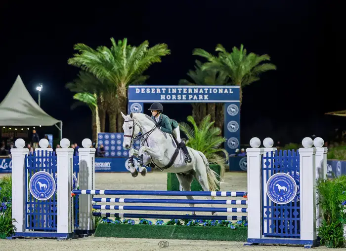 The last time Skylar Wireman and Crunch K were winning in the Desert International Horse Park’s Grand Prix Arena, it was in a CSI3* speed competition. Fast forward a year, and this time—while some of their competitors remained the same—their win came in an entirely different discipline. On Friday, Wireman bested a multigenerational field of equitation riders to take home victory in the $100,000 DIHP 3’3” Pro Equitation Challenge.