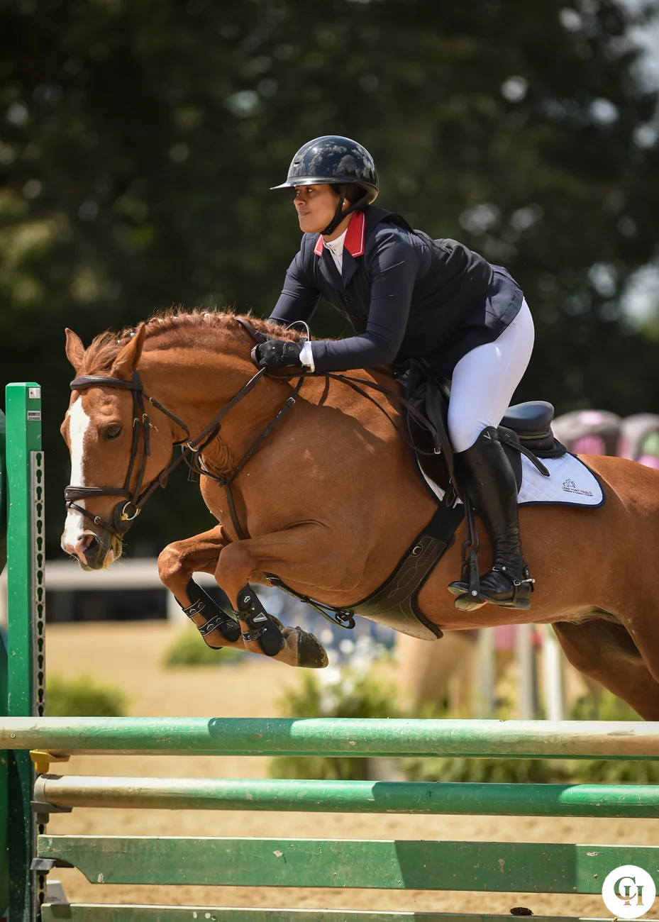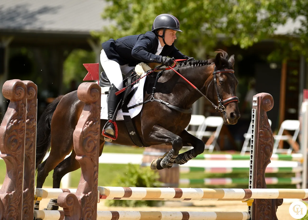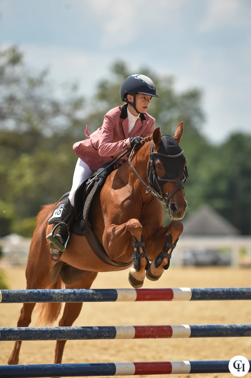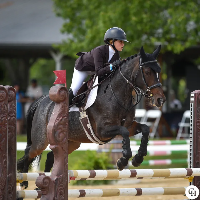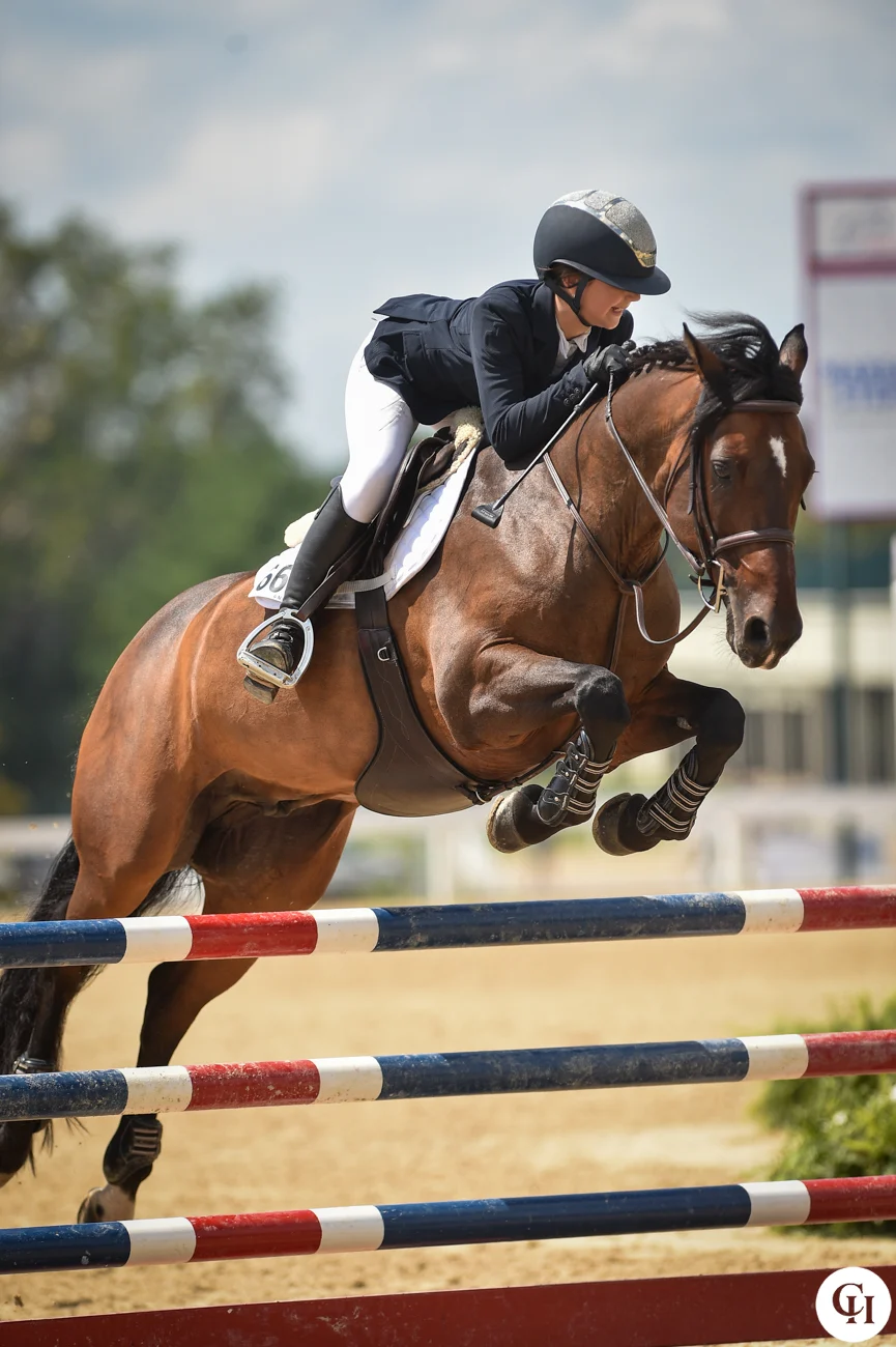 Seventy-one horses contested the large pony division, which was combined with the handful of entries—including Elin and Juan Bay—in the open 1.05 meter division. Fifteen horses kept a clean sheet all week to advance to the jump-off course, and when the pair marched in the ring for that round they stayed focused and efficient to shave over a second and a half off the leading time. Delta S Irish Storm and Zachary Sherer finished second, with Summer Smith on Sissi Mai claiming third.