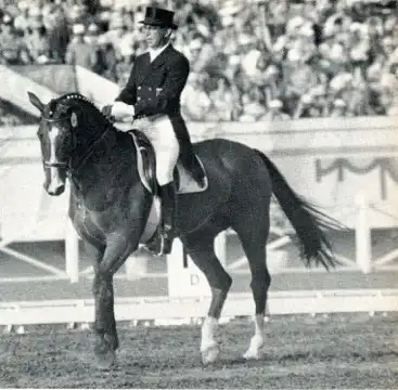 After the first day of the Olympic team dressage competition on Wednesday, Aug. 8, 1984, the heavily favored West German team was in trouble. Their first rider, Herbert Krug on Muscadeur, had scored (for him) a mediocre 1,575 (63%) for a test lacking in energy and riddled with mistakes. There seemed to be a hole in the German armor.