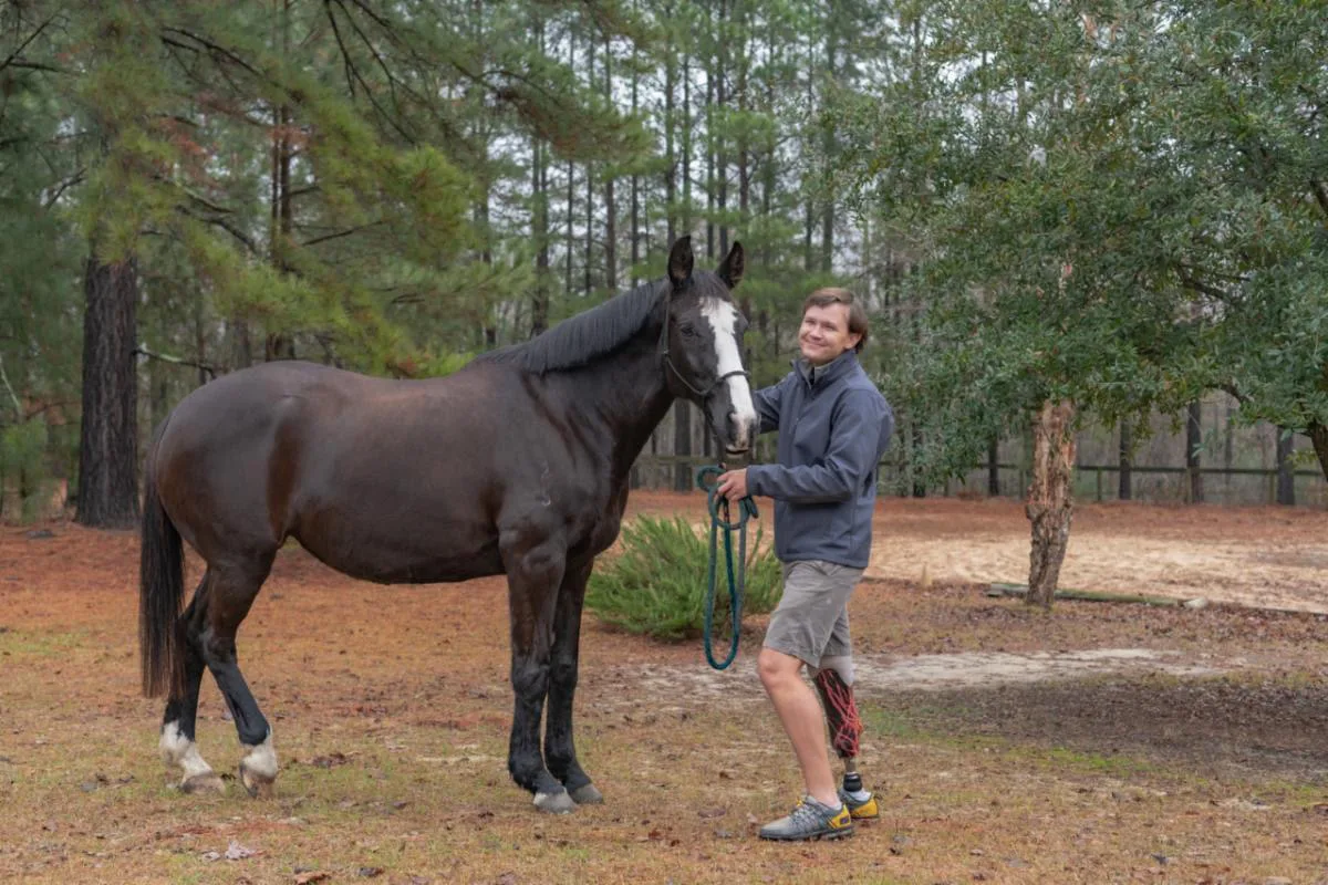 “Horses were always involved in my rehab,” he said. “My girlfriend had a horse named Dude, the chillest gelding you can imagine, and the first day I was out, she helped me get on him and ponied me around the pasture.”