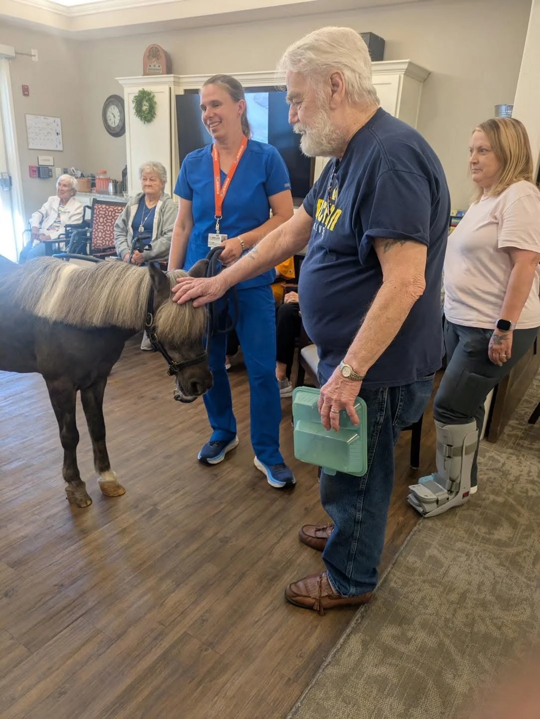 ]]>It’s not unusual for amateur dressage rider Erin Liedle to show up at The Pointe at Lifespring, an assisted living facility in Knoxville, Tennessee, where she works as a physical therapist, with one of her pets in tow. Her dogs are always welcome visitors, but it’s her Shetland pony Stewie who draws the biggest crowd.