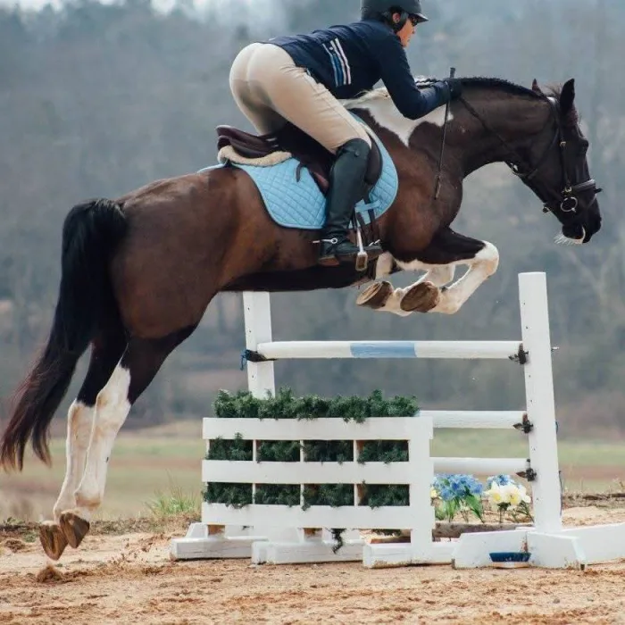 Fortunately, Glory did end up growing—both taller (she finished at 15.2 hands) and broader—and even though Dondanville is 5’9”, she has never felt overly large on the mare.