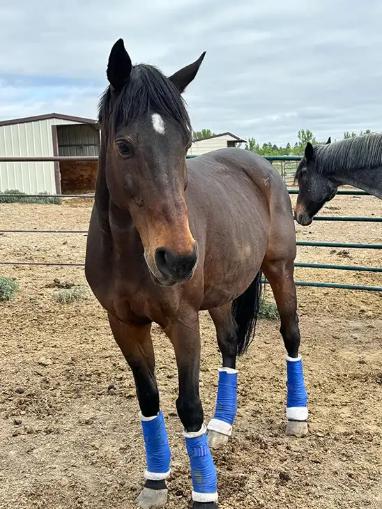 But after his mysterious—and extensive—injuries, the gelding’s prognosis was grim. Foust’s veterinarians Sara Moore and Christy Downey of Quality Equine Vets presented her with three options: take him to Colorado State University for surgery on his front leg, try treat him at home with regional limb perfusion and antibiotics, or euthanize him, as the risk of infection was high because the damage on his leg penetrated the tendon sheath.