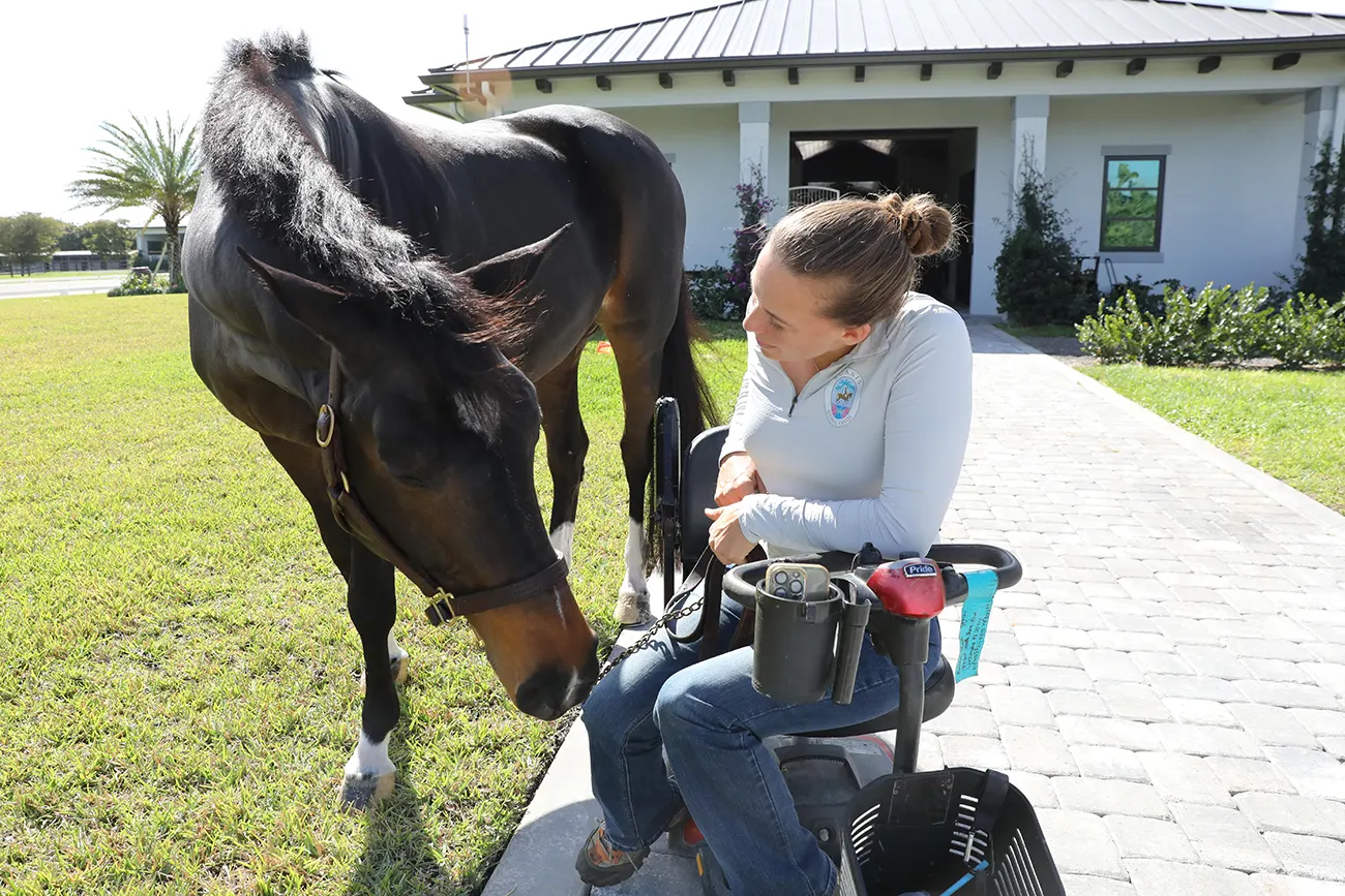 Home at Thinkslikeahorse in Williston, Florida, Ducky settles into his routine under the watchful eye of Cook, and while he’s a serious competitor in the ring, he has plenty of personality behind the scenes.