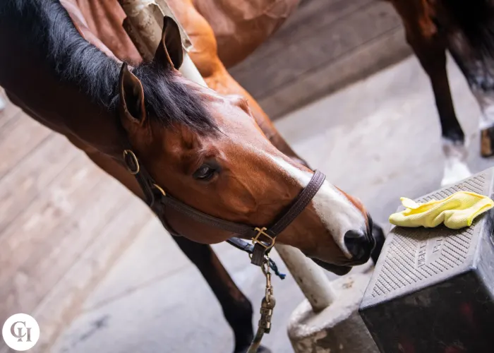 “He comes in around 7 a.m., gets breakfast, then gets groomed,” said Nightingale. “He’s usually the first horse Buck rides, around 8:30. Then he gets a bath, some lunch at 11, dinner at 3, and turnout for the night around 4.”