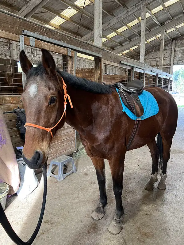 Mikenna has experience in several disciplines and believes it is important to help horses find their best niche, but eventing is her personal passion. In January 2023, Mikenna and Kitty competed at their first horse show, jumping crossrails at a schooling competition hosted by the local Pony Club. Encouraged by Kitty’s performance there, Mikenna began preparing for the Inavale Farm (Oregon) schooling horse trials at the starter level in June. Wearing just a simple leather bit on cross-country, the pair not only completed the event, they walked away with a ribbon.