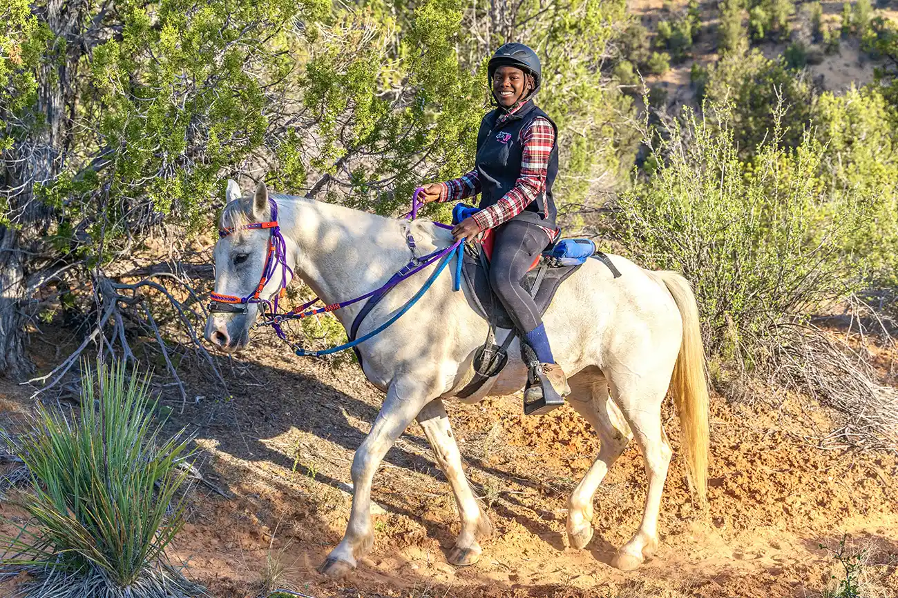 After giving the mare a few months to recover from that experience, in March 2023, Jones sent Lovie to another friend, who proved to be a better match. Later that summer, Jones began taking Lovie on solo trail rides. She found the mare to be brave and forward-thinking, ideal qualities for endurance.