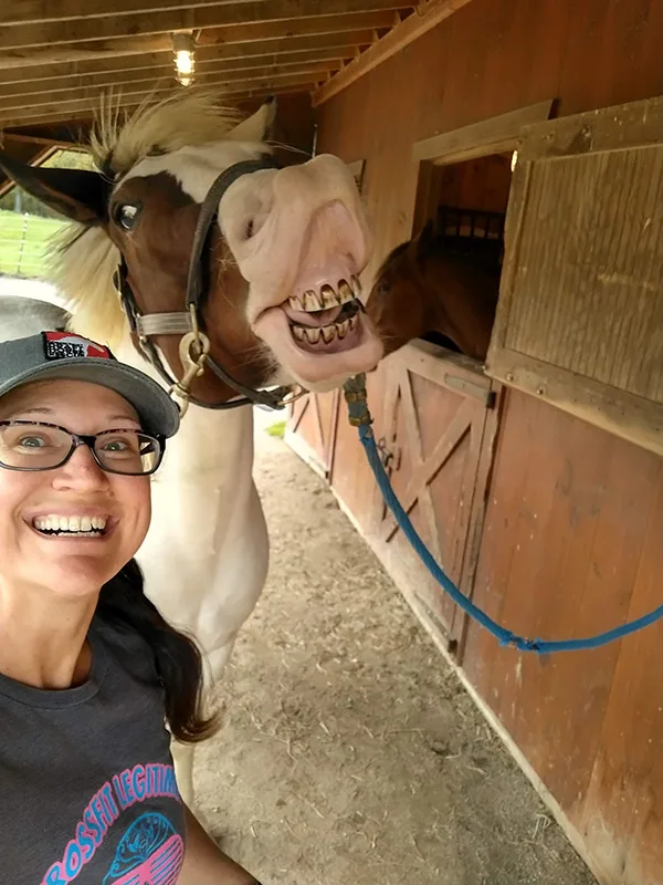 Now 11 years old, Tinker has continued to only show minor signs of headshaking, and so far, Laura has been able to mitigate most symptoms with attention to tack fit and a magnesium supplement. She has worked closely with her vet to better understand the syndrome, and notes he does still exhibit some more subtle headshaking indicators, such as touching his nose to her while leading and holding his ears out to the side.