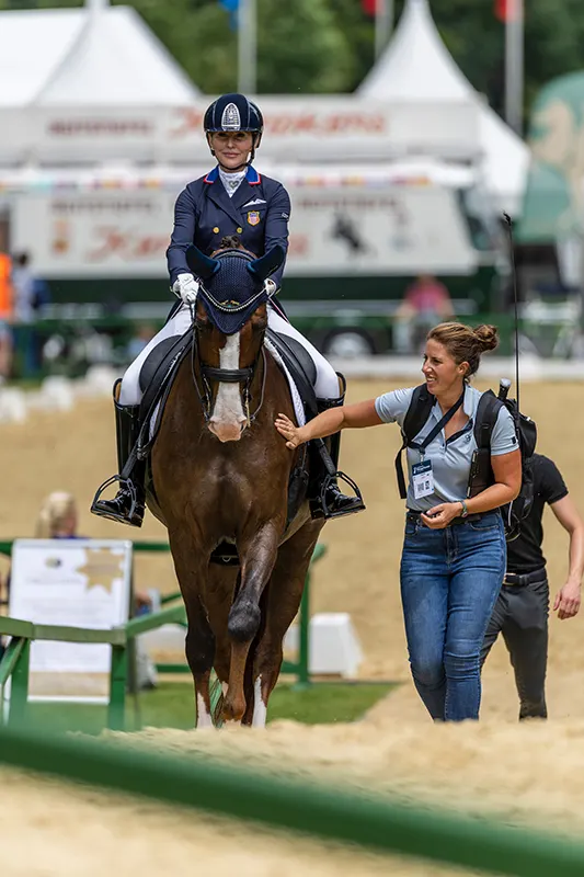Muma considers her job to be the voice of the horses in her care. She and fellow groom Birgit “Bernie” Maier, who worked for show jumper Margie Engle for more than 20 years, take care of Susan’s seven horses.
