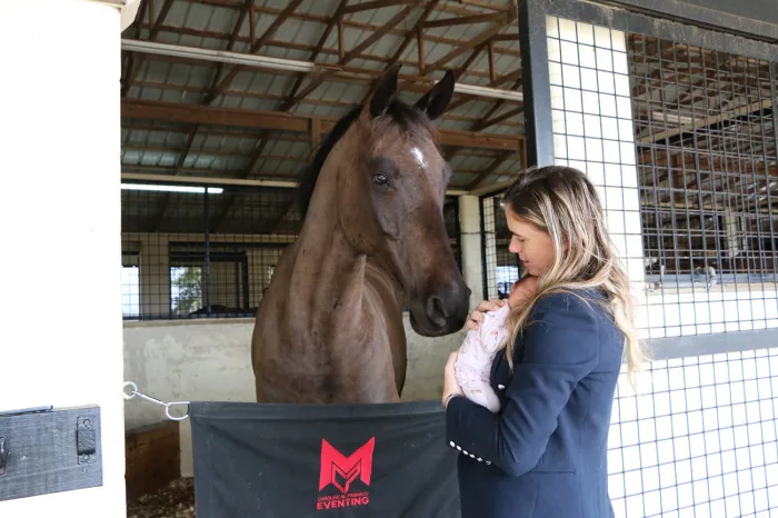 I stayed really fit. I’ve always been going to the gym and all that. So I did that all through my pregnancy and kept riding. The last few weeks of my pregnancy I took easy, but I still was doing a ton of walking and a ton of stuff on the ground. The week before she was born, all the horses were moving from Pennsylvania to Florida, so we were doing stuff in the barn. I stayed super active, that’s the biggest thing.