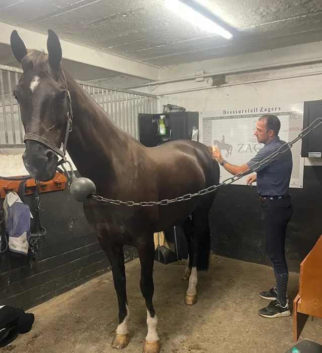 But overall, the journey was very easy. Alice tried to compete her once as a young horse and there she was spooky. If we knew that we would go this route, I think we should have taken her more out. But Alice said, I will deal with this later when she’s grown up.