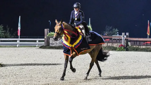 “The first probably four jumps, I felt like I kind of needed to hold his hand a little bit and just be a little bit not as brilliant as sometimes you would want for a class like that,” she said. “But I think his jumping style was covered up a lot, and by the in-and-out to the last two lines, he was just in the groove then, and I could let go of his head a little bit and just kind of get to the jump and let him explode over the jump.”