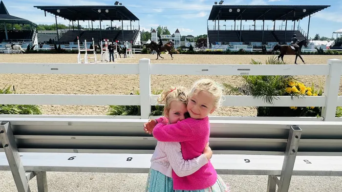 “I don’t understand why they had to put jelly on their peanut butter and jelly sandwiches,” she shrieked in protest at the tea sandwich selection. She glared at the volunteer servers and drowned her sorrows in lemonade. The dance floor was a hard no for my grouchy kid, too. While other girls danced their little hearts out to live music, my hangry kid brooded on my lap. Regardless, we all enjoyed the incredible view of the Dixon Oval, which was full of drool-worthy horses. “Wow! Look!” My girls pointed at the riders schooling in the ring through the huge windows.