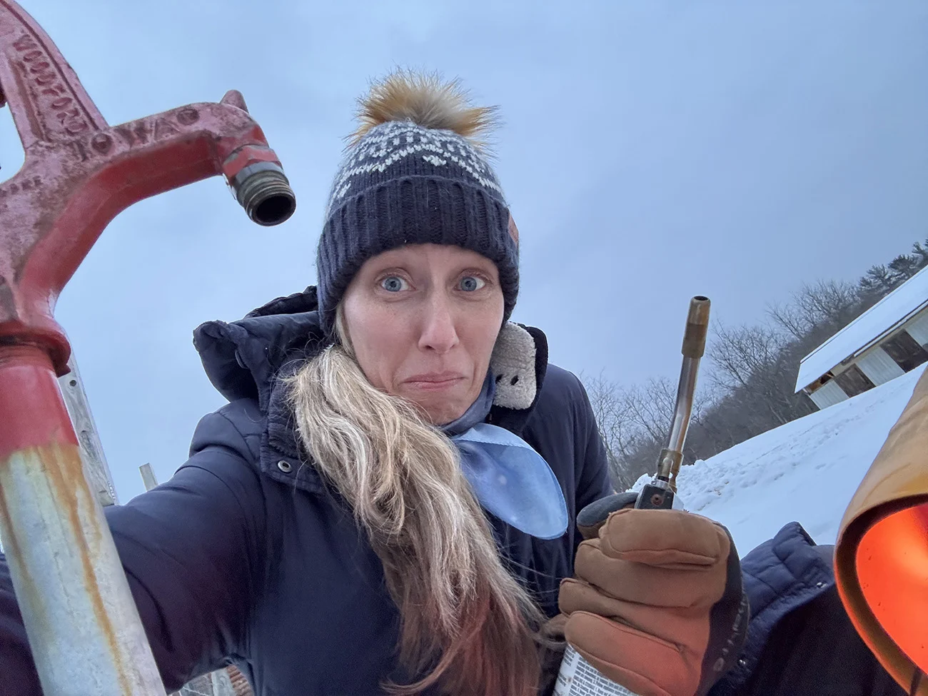 The icy condensation on the propane canister froze my fingers, but my legs were toasty next to the heater, and I happily (crazily?) singed the fallen leaves buried at the pipe’s base. As the sun sank orange behind the trees while I ran the tiny flame back and forth over the hydrant, the only thing to do was giggle at the absurdity of it all. I screeched with joy when liquid water, half an hour later, poured from the pump. The beer my husband and I shared later, on the couch in our long underwear, was delicious.