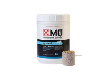 The Purina® Systemiq™ Probiotic Supplement contains a unique strain of bacteria (Bacillus coagulans) that has been shown in research to: