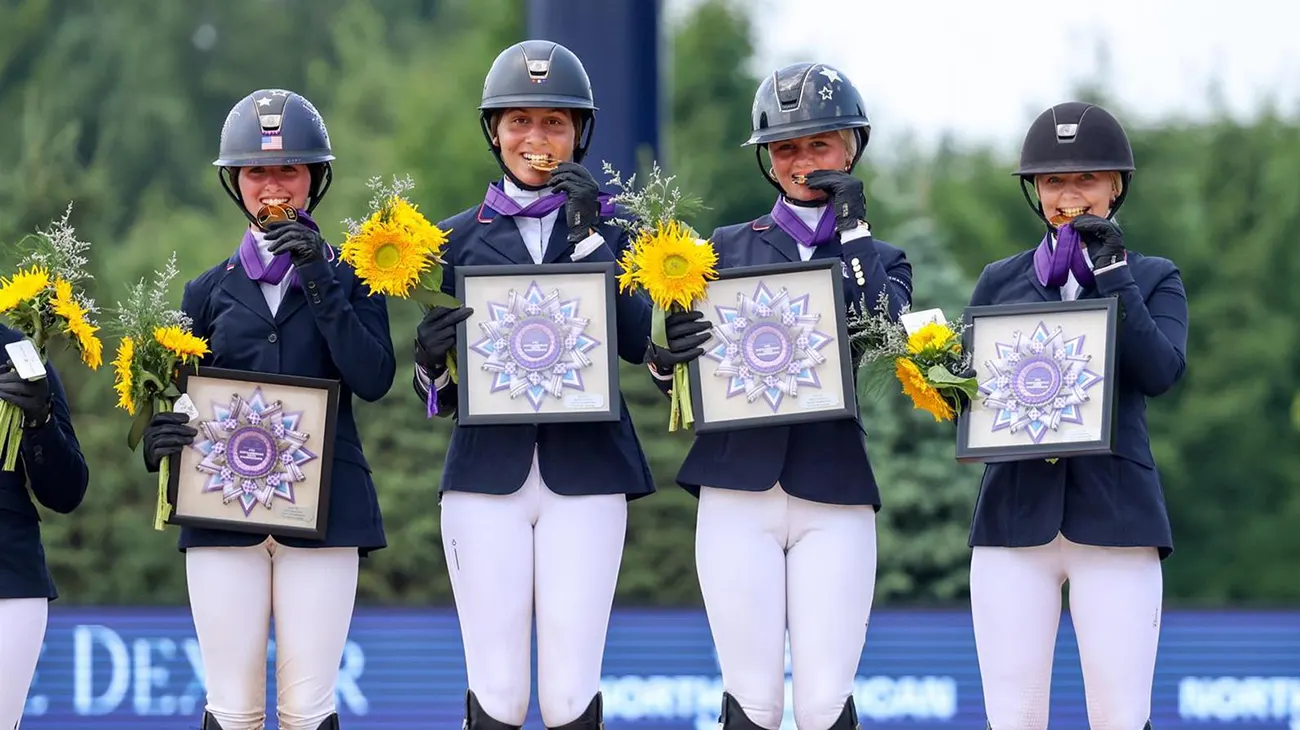 The bronze medal was presented to a combined Zone 1 and 9 team. Zone 1 athletes included Eva Mackenzie of Darien, Connecticut, riding Idol H&H and Jordan Rich of Wayland, Massachusetts, on Sebastian, while Zone 9 was represented by Iris Hickey of Washougal, Washington, with Daiquiri and Grace Wahlberg of Harrison, Idaho, aboard Zeppelin Blue.